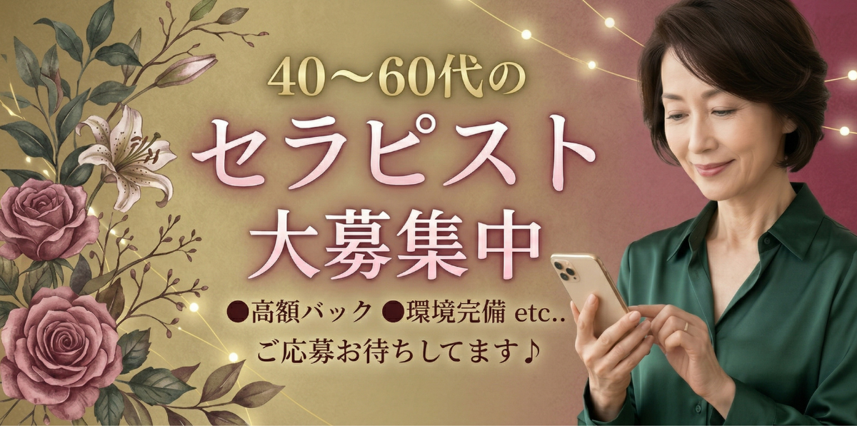 当サロンでは、一緒に働いてくださるセラピストを募集しております。 まずは求人詳細をご覧いただき、少しでも気になった方は公式LINEよりお気軽にご連絡くださいませ。 ご応募やご質問には女性スタッフが丁寧に対応し、今後の流れをご案内いたしますので、どうぞご安心ください。